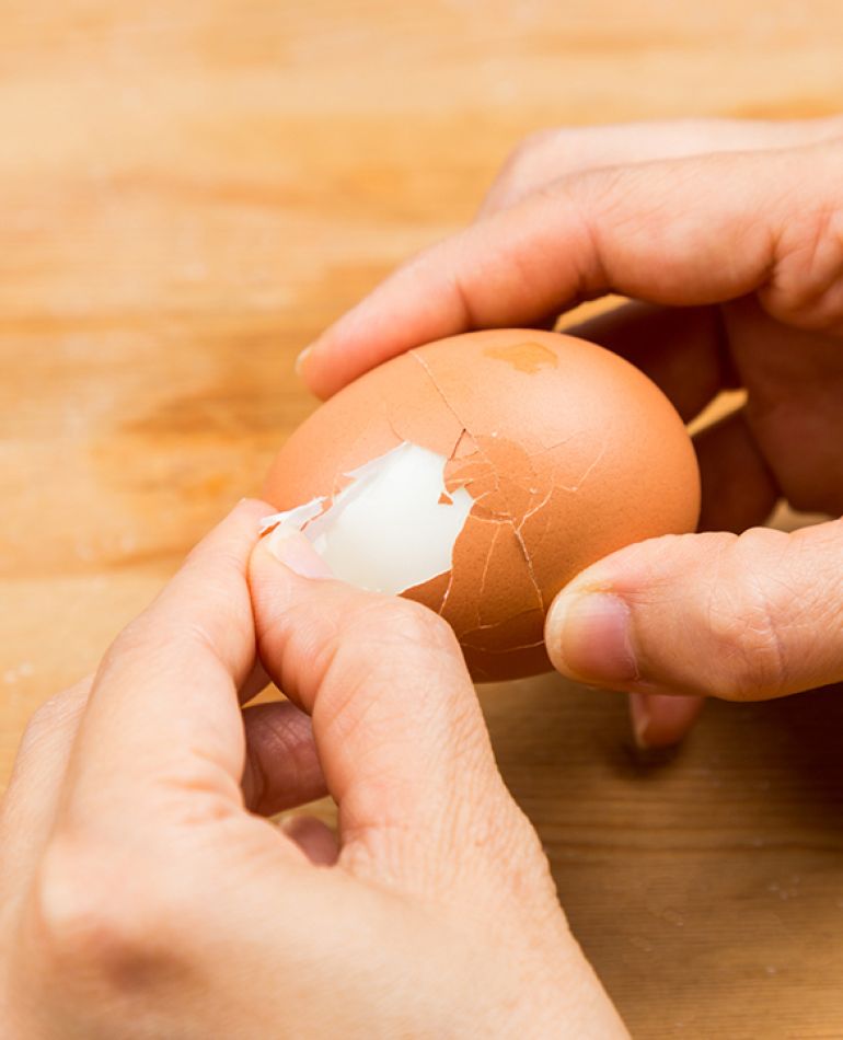 2. Assim que der o ponto de cozimento, descasque os ovos como de costume, só que agora, a casca sairá com mais facilidade